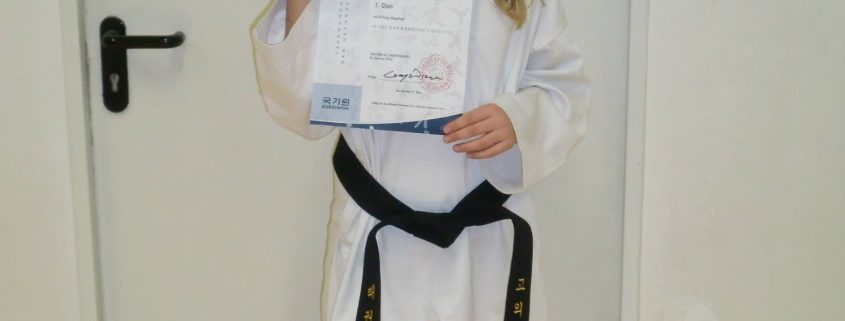 Mit 11 Jahren ist Michelle Ruf jetzt die jüngste Schwarzgurt (Poom) Trägerin der Abteilung Taekwondo.