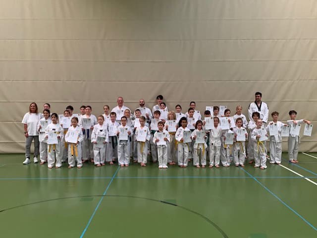 40 Sportler nahmen an der Gürtelprüfung teil, so viele wie noch nie. Besonders an dieser Prüfung war, dass jeder Gürtelgrad vom 9 Kup bis zum 1 Kup geprüft wurde.
