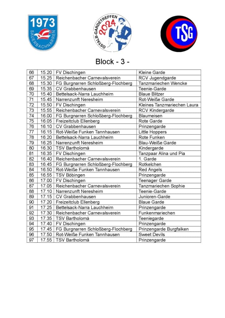 Die Anmeldungen von fast allen angeschriebenen Vereinen/Zünften für das Ostalb-Gardetreffen 2024 sind bei uns eingegangen, hierzu drei Zahlen: 26 – 97 – 1300.
