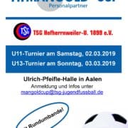 /0 Kommentare/in Fußball Jugend (öffentlich), TSG NewsAm 02. und 03.03.2019 richten die TSG-Jugendfußballer wieder ihren traditionellen Mangold-Cup aus. Gespielt wird wie üblich mit Rundumbande. Das U11-Turnier findet am Samstag 02.03.2019, das U13-Turnier am Sonntag 03.03.2019 in […]