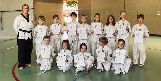 Trotzdem blieben die Schüler am Ball und trainierten fleißig und belohnten sich am 14.07.2022 mit bestehen der Gürtelprüfung. Alle Schüler haben mit guten bis sehr guten Leistungen die Hürde geschafft. Für sechs Schüler war es die erste Prüfung und für acht Schüler die nächste Hürde.